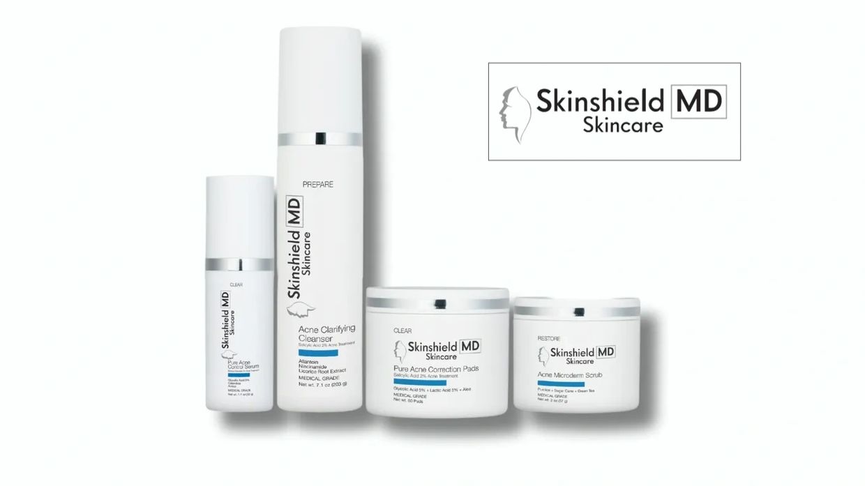 The Skinshield MD Acne Shield Kit is a dermatologist-developed, 4-step system designed to treat acne and prevent future breakouts. With clinical-strength ingredients and soothing botanicals, this kit helps restore clear, healthy, balanced skin.